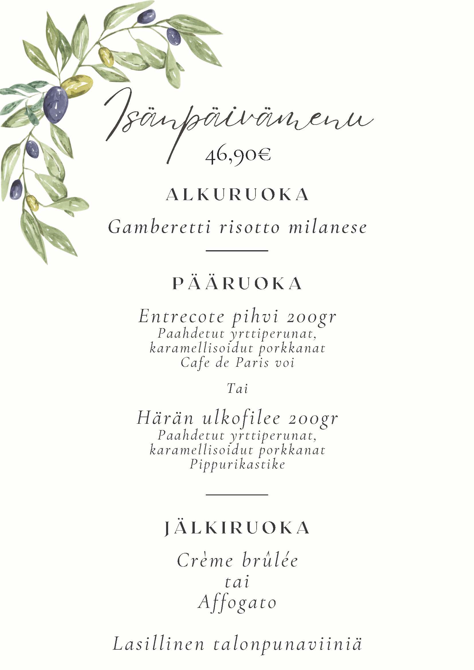 Varaukset puhelimitse numerosta 041 328 0808 tai sähköpostitse osoitteeseen info@bistroolea.fi